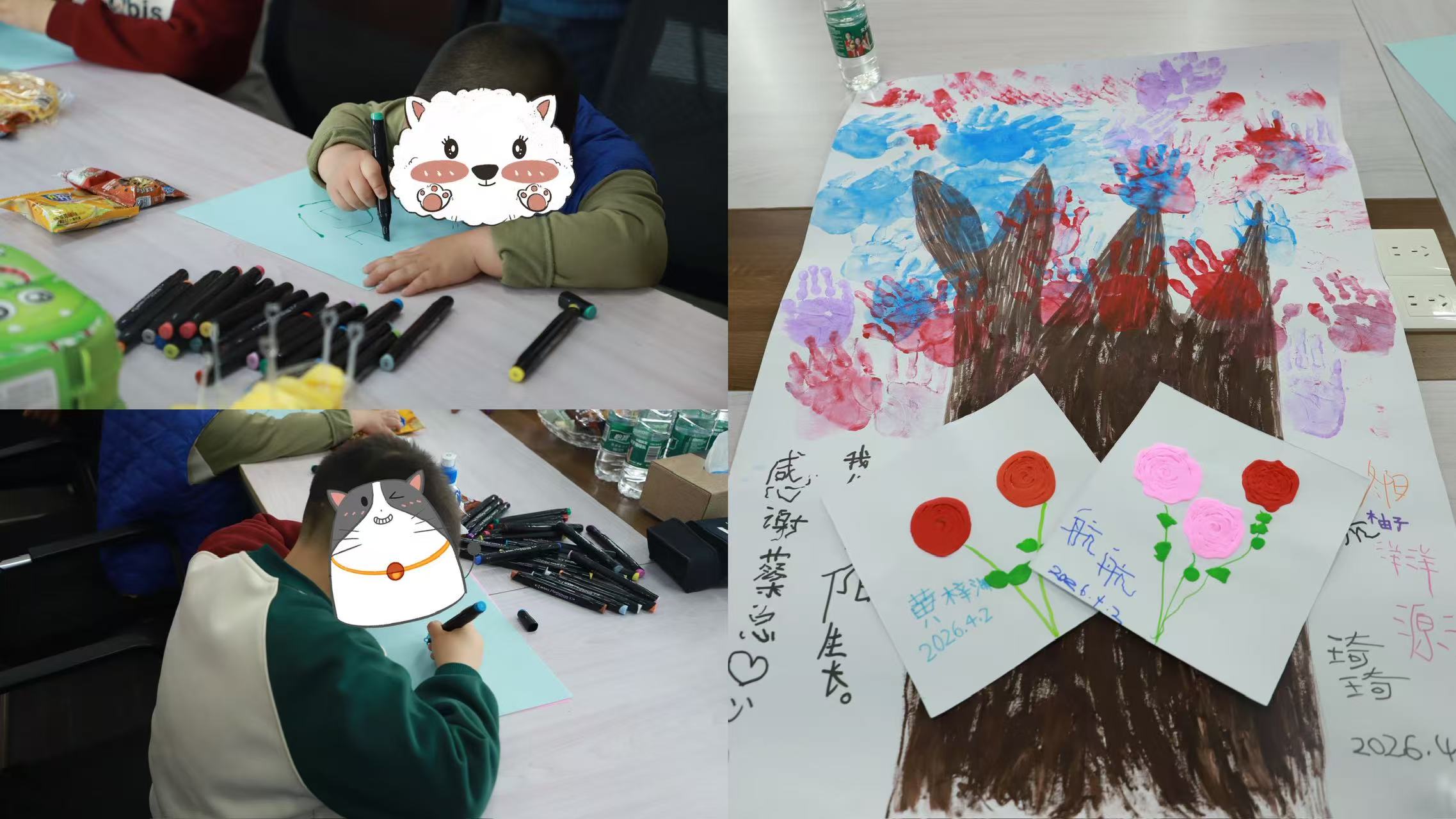 孩子们话语不多,却以澄澈心意,将明亮色彩细细描摹在画纸上。这幅图画是比千言万语更珍贵的馈赠,藏着他们最纯粹的亲近与欢喜。